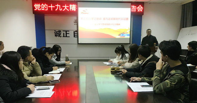 12月5日晚,商学院在主楼606室邀请校党委宣讲团成员、党委常委、组织部部长尹德树为学院第十期青马工程培训班全体学员作辅导报告,报告题为《不忘初心牢记使命,奋力走好新时代长征路》,商学院党委书记杨天华主持报告会。