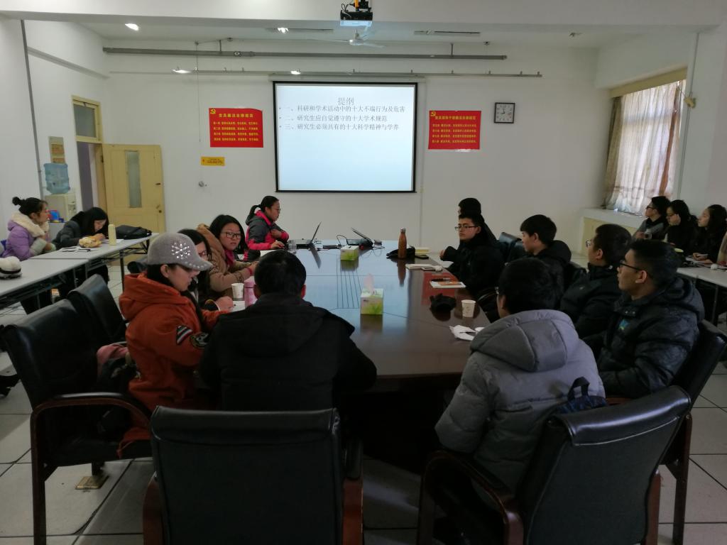 与会师生还围绕“研究生科学道德与学风建设”进行了热烈的讨论,大家纷纷表示,在今后的科学研究工作中要自觉遵守科学规范,坚决抵制学术不端行为,维护科学精神。