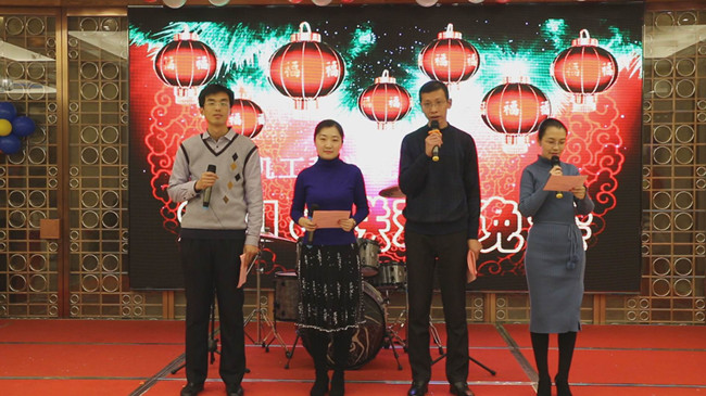 学院党委书记赵耀华致新年贺词,他简要回顾了学院过去一年的工作,总结指出取得的成绩和不足,对2018年的工作提出了希望。院长李存华宣布晚会开始。晚会由姜兵、姜宏岸、黄霞、樊宁四位老师主持。