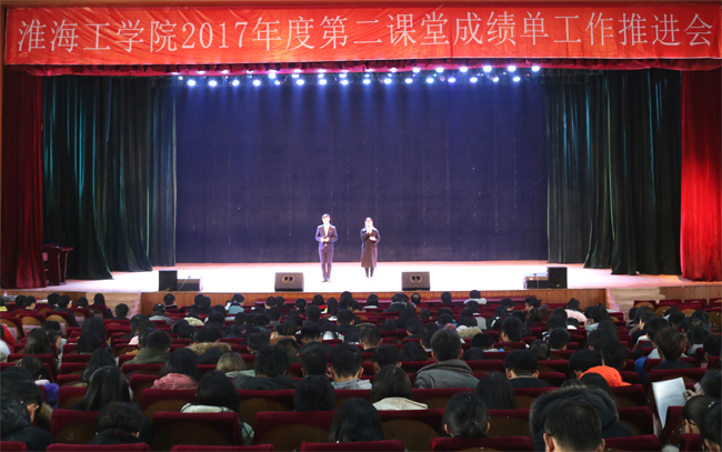 12月20日,我校第二课堂成绩单总结表彰会在苍梧校区大礼堂举行,学生处处长汤洪涛、教务处副处长孙国红以及校团委全体工作人员和全校500余名学生骨干代表参加会议。