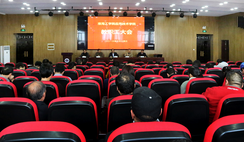 樊华传达了学校近期召开的二级学院院长会议和《淮海工学院关于做好第三轮岗位聘任工作的通知》等文件精神,通报了大学创建工作形势要求,并对应用技术学院岗位聘任工作组织领导、聘任程序和进程安排进行了详细解读。
