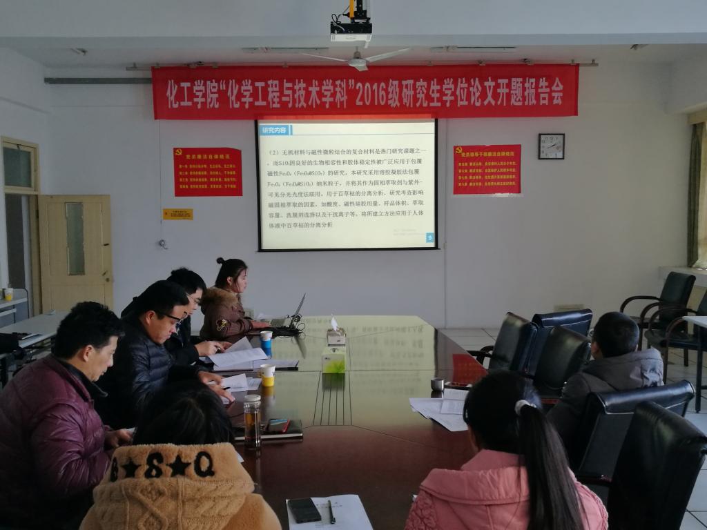 3月19日下午,化学工程学院“化学工程与技术”学科2016级硕士研究生开题报告会在教学主楼如期举行,12名研究生参加并汇报了各自的研究课题,2017级研究生现场观摩学习。报告会分两组,分别由化学工程学院院长童志伟教授和副院长张东恩教授担任组长,李树安教授、张田林教授、张珍明教授、杨涛教授、张源源副教授、陶传洲副教授担任此次报告会的评审专家。