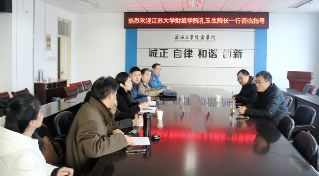 3月22日,江苏大学财经学院院长、博士生导师孔玉生教授携国贸系鄢军主任到商学院进行指导和交流。交流座谈会由商学院党委书记杨天华主持,副院长蒋智凯、会计系主任商思争、财务管理系主任王洪海、会计系书记骆阳、金融系书记黄萍、会计系易爱军老师参加座谈。