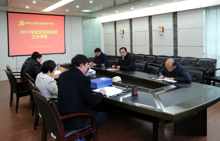 为深入贯彻落实全面从严治党要求,进一步推进基层党建工作规范化、制度化、科学化,不断提高党建工作水平,根据《淮海工学院党支部建设工作目标及考核办法》,日前,应用技术学院党委对全院4个党支部2017年度建设工作目标进行考核。应用技术学院党委书记周清华主持会议,党委副书记、副院长万金店,各党支部书记、党政办负责人参加了考核会。