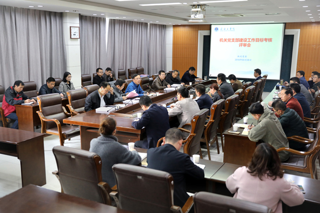 为进一步落实全面从严治党,切实加强机关党建工作,促进机关党支部标准化建设,3月30日下午,机关党委在文渊楼二楼会议室召开机关党支部建设工作目标考评会,4位二级学院党委书记应邀担任评委。机关党委委员、机关各党支部书记和支部委员参会,会议由机关党委书记陈卫主持。