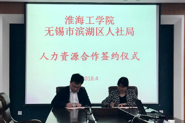 4月10日下午,我校与无锡市滨湖区人力资源和社会保障局在文渊楼会议室举行人力资源合作签约仪式。