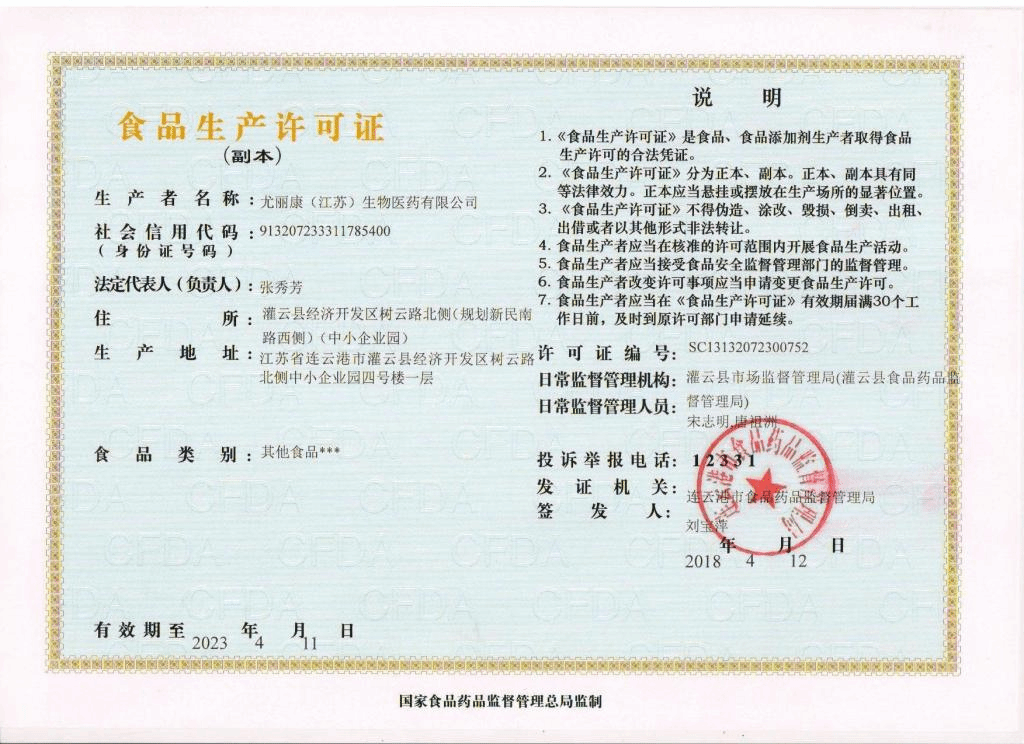近日,全国首个蛋黄球蛋白粉生产许可证落户海洋生命与水产学院产学研合作企业——尤丽康(江苏)生物医药有限公司。