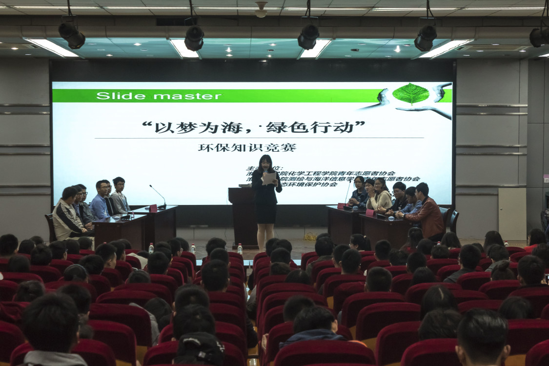 4月22日晚,化学工程学院青年志愿者协会与测绘与海洋信息学院青年志愿者协会、大学生生态环境保护协会于艺术楼报告厅共同举办环保知识竞赛决赛。活动邀请化学工程学院辅导员陈志老师、测绘与海洋信息学院团委副书记周小晓老师等担任评委。