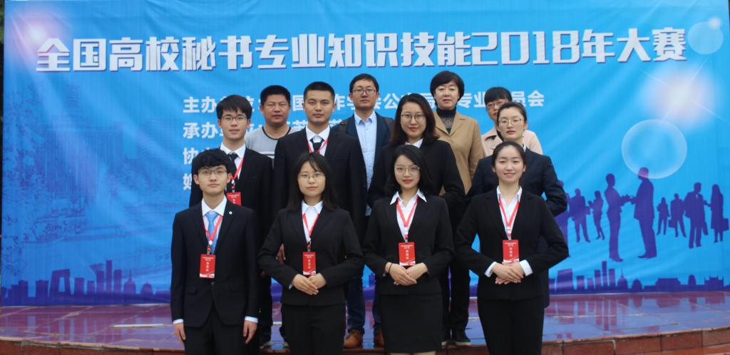 4月20日至22日,我校文学院八名参赛队员在领队芦海英教授的带领下,参加在徐州举行的“全国高校秘书专业知识技能2018年大赛”。经过激烈角逐,八名选手顺利完成秘书基础知识、硬笔书法、公文撰写、方案制作、方案讲解展示、秘书工作情景展示、秘书职业形象与素养等七个环节的比拼,获得1项团体二等奖与11项个人单项奖的佳绩。