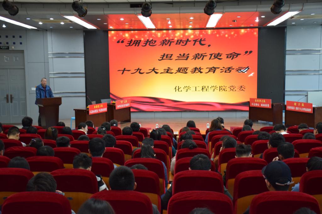 为深入学习贯彻党的十九大精神特别是习近平新时代中国特色社会主义思想,贯彻执行上级党组织“高质发展、后发先至”的决策部署,化学工程学院党委于4月25日下午在艺术楼报告厅开展“拥抱新时代,担当新使命”十九大主题教育活动。学院党委书记刘新河、副书记王改红出席活动,各教工党支部书记、学生党支部书记、党员、发展对象、入党积极分子参与本次活动。