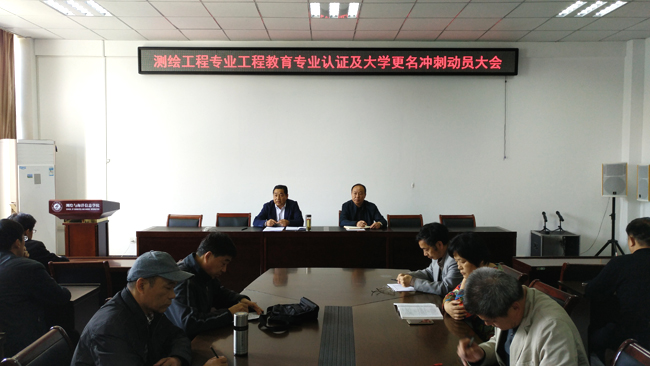 教育部高等教育教学评估中心、中国工程教育专业认证协会已受理我校测绘工程专业第二次认证申请,将于今年6月份进校进行现场考察。为加强对专业认证工作的领导和组织,确保测绘工程专业认证顺利通过,学院专门成立了测绘工程专业认证工作领导小组,下设协调组、材料组、访谈组、考查组、综合组等5个工作组。学院院长焦明连还就专业认证工作总体进度分四个阶段进行动员。目前学校大学更名已处于冲刺阶段,焦明连在介绍了大学创建几个时间节点的基础上,根据学校有关会议要求,围绕近期需要整改的11个方面进行布置。