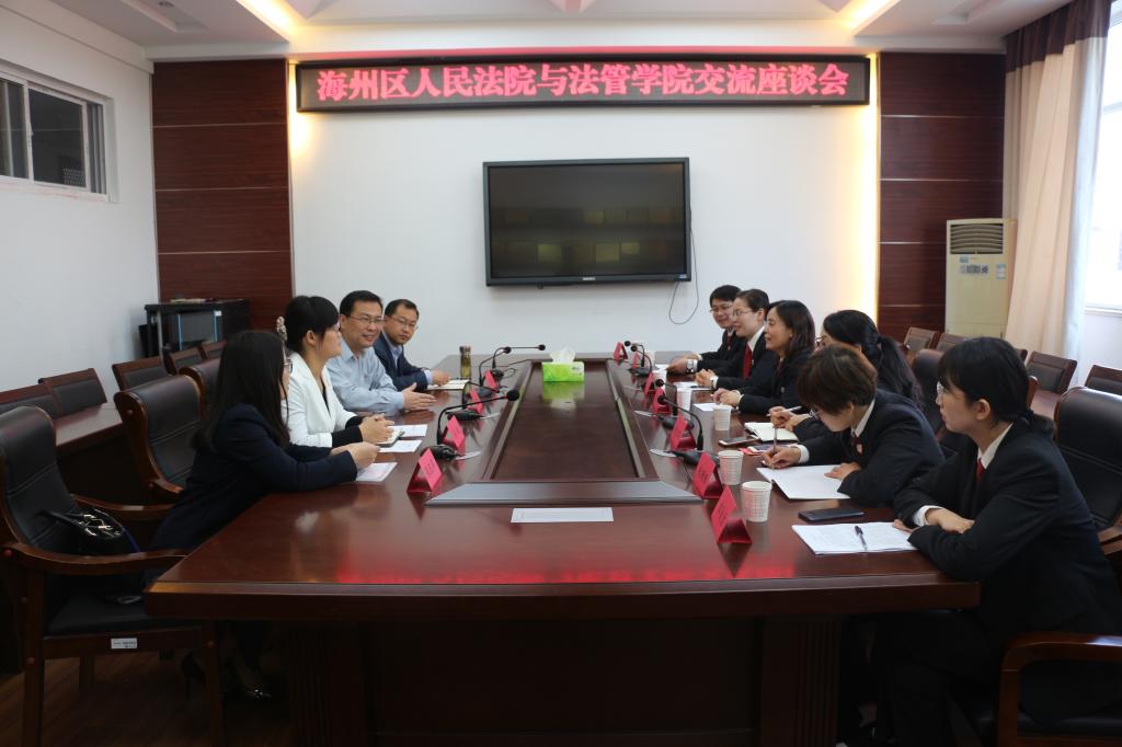 活动前,法律与公共管理学院副院长、副书记黄金虎,院长助理李敏以及法学系副主任吴建国、张玉萍副教授与李雪华庭长一行就双方加强产学研合作事宜进行了交流。