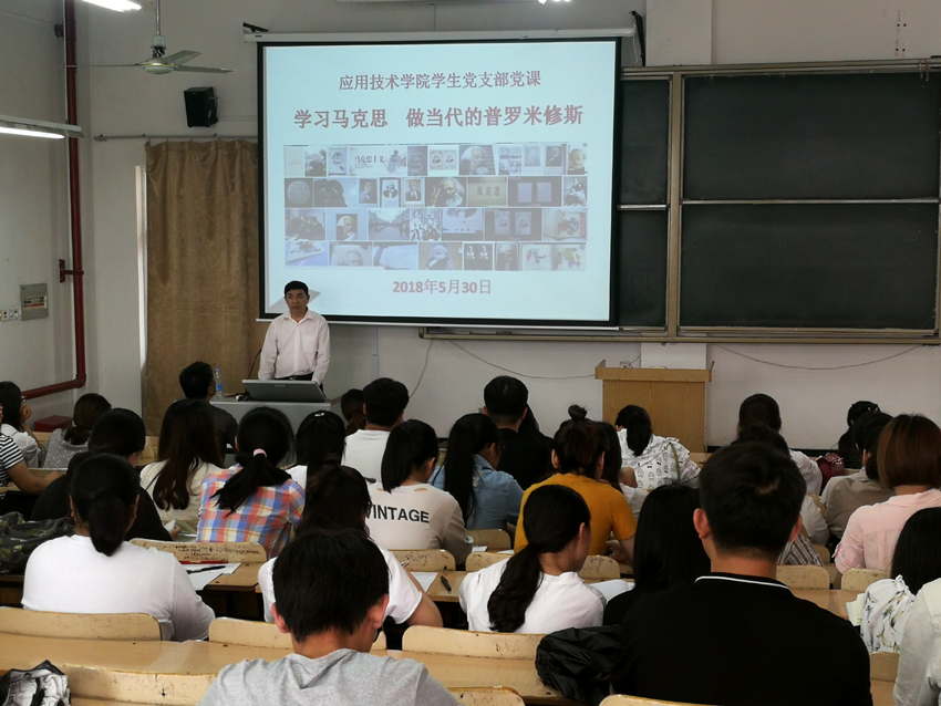 为纪念马克思诞辰200周年和《共产党宣言》发表170周年,不断坚定学生党员的马克思主义信仰和共产主义理想,应用技术学院学生第一、第二党支部于5月30日下午在敦行楼113教室举办专题党课。