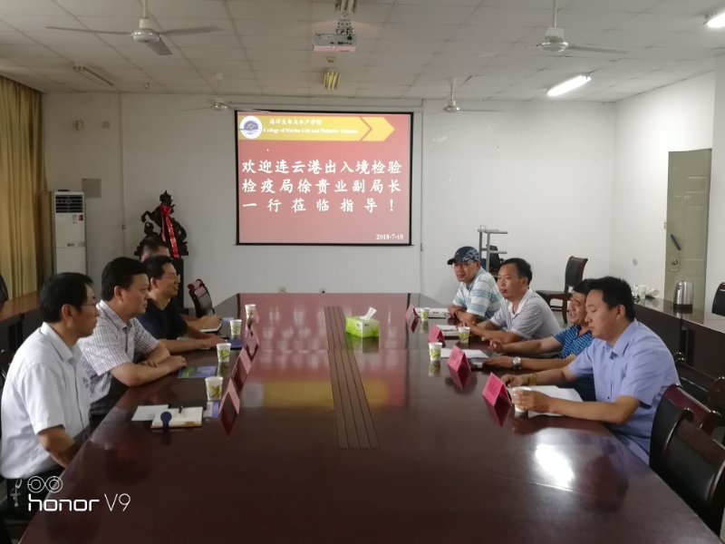 7月10日下午,连云港出入境检验检疫局副局长徐贵业一行4人,来到我校海洋生命与水产学院洽谈科研合作事宜。