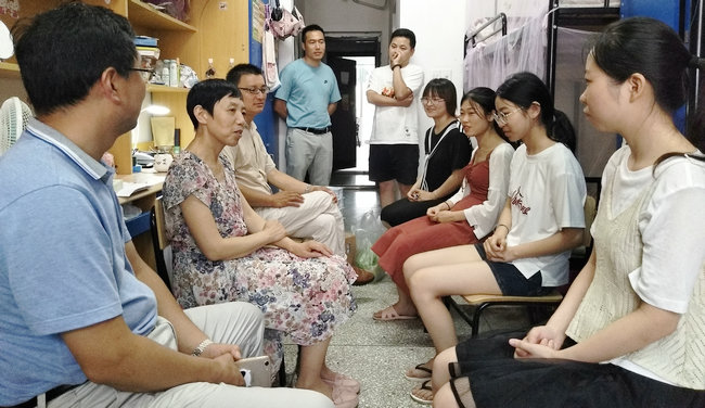 慰问完商学院留校学生,商学院领导专程来到宿舍管理办公室,看望慰问了宿管人员,感谢他们在炎热暑期坚守岗位,保障了留校学生的日常生活。