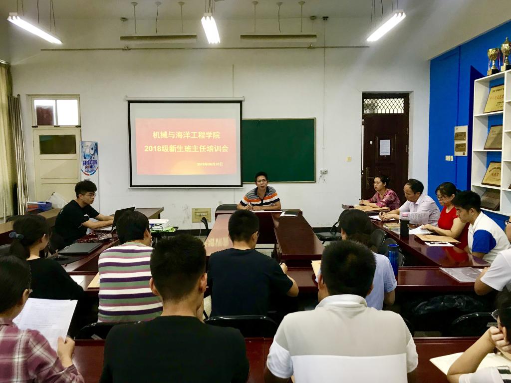 为更好地迎接2018级新生的到来,加强新生教育管理,8月30日下午,机械与海洋工程学院在机械楼206召开2018级迎新协调会暨新生班主任培训会。学院党委书记毛纪登、副书记赵求勇、全体辅导员、2018级新生班主任及班主任助理参加了会议,会议由赵求勇主持。