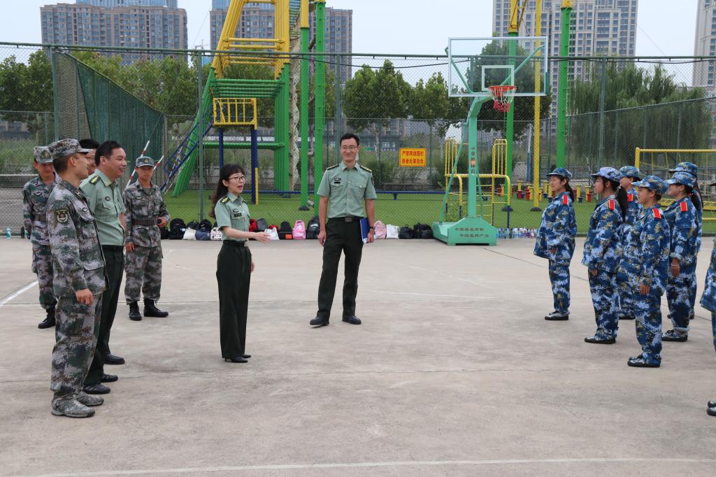 金芙蓉一行来到军训团官兵中间,对中国人民解放军31609部队承训教官的辛勤付出表示衷心感谢。金芙蓉耐心地听取教官的训练情况汇报,询问训练开展情况,勉励学员们发扬不怕苦、不怕累的精神,刻苦训练,圆满完成军事训练任务。金校长一行还看望了医疗保障点的医生和护士,感谢他们的辛勤付出,并希望他们全力做好学生的训练监护和医疗保障工作。