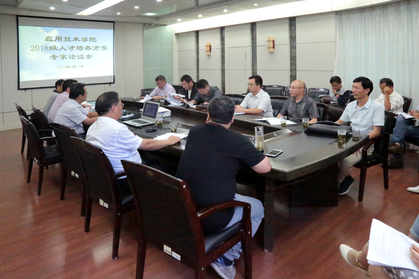 为进一步深化教学改革,探索应用技术型人才培养新途径,不断提高人才培养质量,9月20日下午,应用技术学院在学院行政楼3楼会议室召开2018级人才培养方案专家论证会,校内外专家二十余人参会,应用技术学院党委书记周清华主持会议。