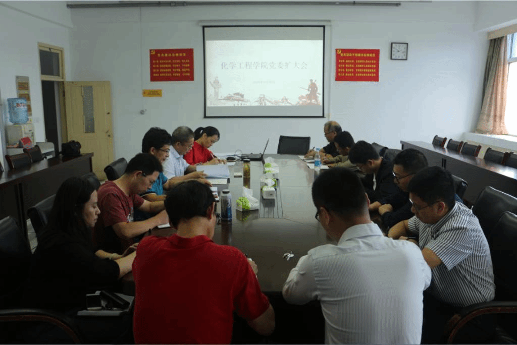 9月19日上午,化学工程学院在主楼1006召开党委扩大会,全体党委委员、党支部书记参加会议,学院党委书记刘新河主持会议。