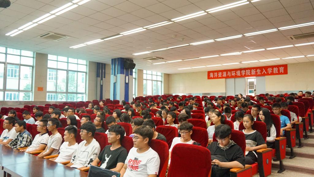 9月18日下午,海洋资源与环境学院新生入学教育专家报告会在艺术楼报告厅举行。连云港市海洋与渔业发展促进中心副主任、教授级研究员陈百尧,江苏省大学生村官研究所所长、教授李义良应邀分别作题为《新时代下的我国渔业资源、环境可持续发展新要求、新对策》《大学生职业生涯开发与管理》的报告。学院党总支书记陈丽主持报告会,辅导员陈志、朱甜甜及2018级全体新生聆听了报告。