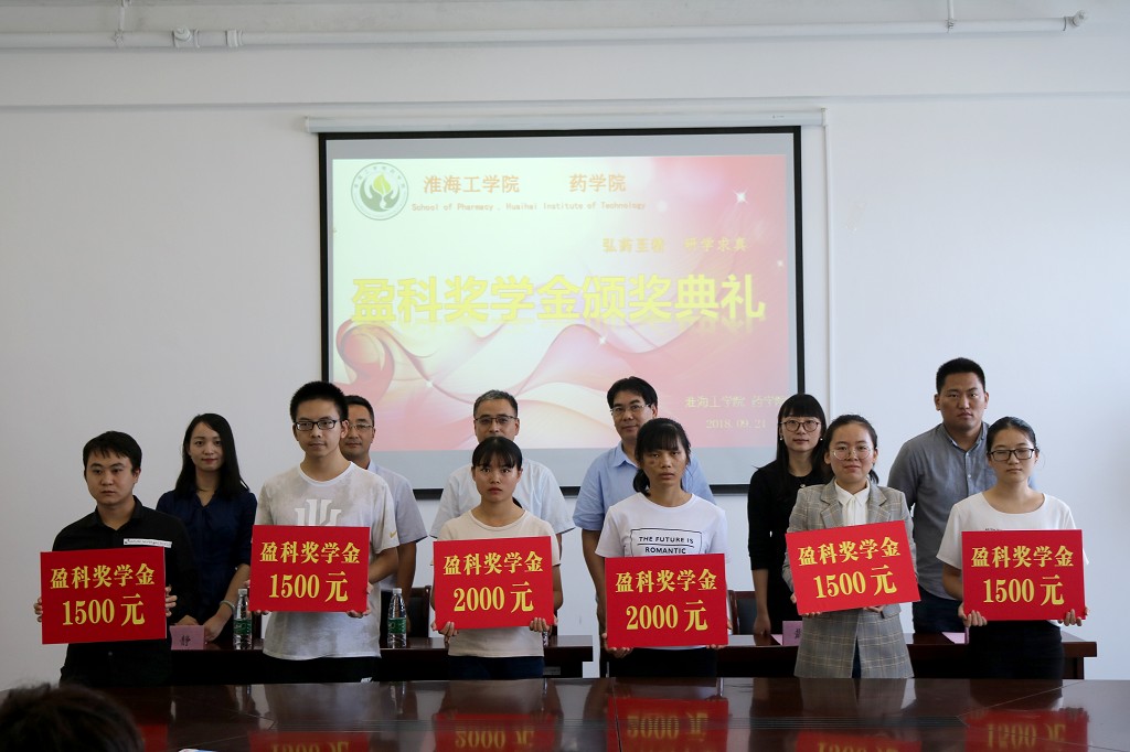 9月21日下午,药学院“盈科”奖学金颁奖仪式在主楼1106室举行。江苏盈科生物股份有限公司常务副总刘涛、注册申报及质量部部长戴阿娟、总经办主任田静等专程来校颁奖,校学生处副处长陈德翼、药学院党总支书记李树安等出席。仪式由药学院院长助理李海南主持,2018级全体新生通过直播形式观看了颁奖仪式。