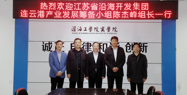 10月15日下午,江苏省沿海开发集团连云港产业发展筹备小组组长陈杰峰一行来商学院调研并洽谈产学研合作事宜。