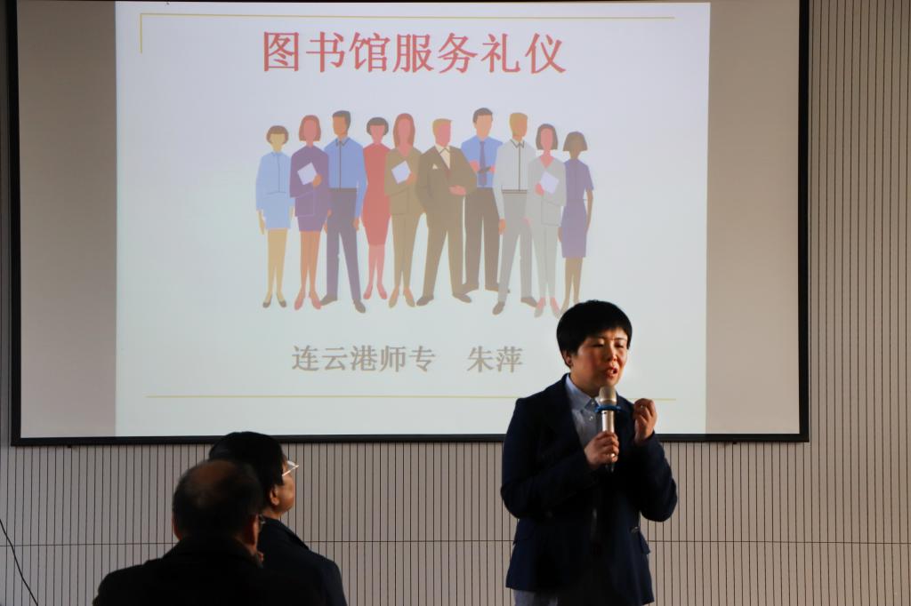 为配合学校校风建设,提升图书馆对外服务形象和水平,10月31日下午,图书馆在东馆二楼多功能阅览室举办“图书馆服务礼仪”讲座,邀请连云港师范专科学校教育学院院长朱萍老师担任主讲。图书馆党政领导、全体职工现场聆听了报告。