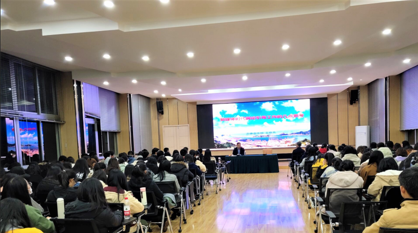 11月16日晚,连云港市市委宣传部常务副部长、文学院95届优秀校友王修杰回到母校,在通灌校区诚意楼路演大厅,给文学院师生作了一场精彩的报告。文学院党委书记马恒民、院长安俊丽、党委副书记田德勇和同学们一起现场聆听了报告。