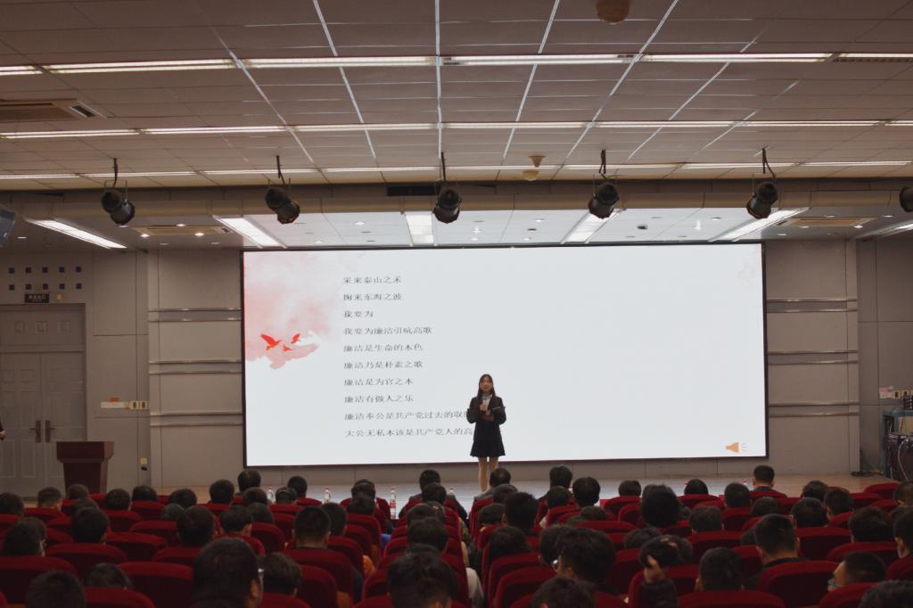 为了响应学校“立德 担当 守规”廉洁主题教育宣传月活动,11月18日晚,电子工程学院举办的“中国情 廉洁梦”主题朗诵比赛决赛在苍梧校区艺术楼报告厅顺利举行。校纪委副书记王吉春,学生工作处处长朱国军,校团委副书记朱小明,电子工程学院党委书记陶建兴,电子工程学院党委副书记钱汉珍出席活动。