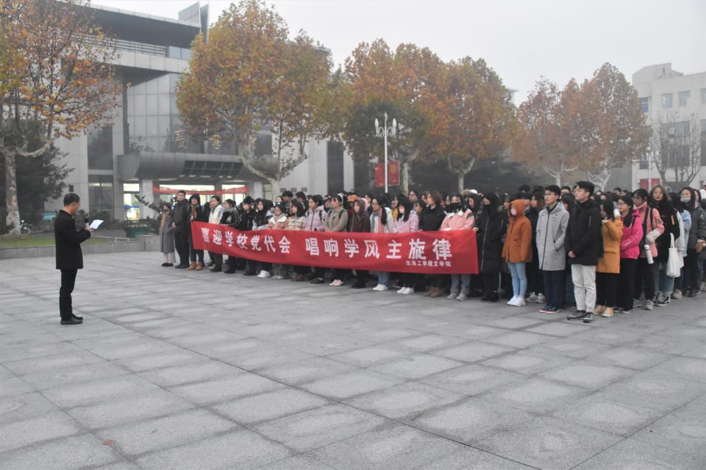晨曦微露,朝阳初升。11月19日早晨,文学院“喜迎学校党代会,唱响学风主旋律”主题升旗仪式在主楼前广场隆重举行。学院党委书记马恒民、院长安俊丽、学院党委副书记田德勇出席活动。