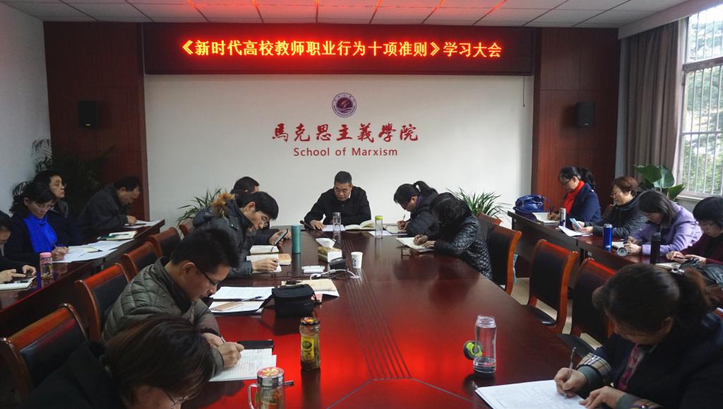 11月21日下午,马克思主义学院在学院会议室举办了《新时代高校教师职业行为十项准则》学习座谈会。学院党总支书记张学武主持会议。