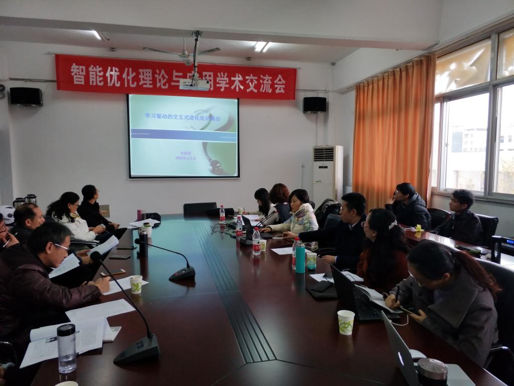 12月5日上午,理学院在学院会议室举办智能优化理论与应用学术交流会。本次会议由校科技处、理学院、省自动化学会青工委共同主办。会议邀请中国矿业大学智能优化与控制团队专家与我校师生交流智能优化理论与方法在软件测试、交互式进化优化,以及鲁棒动态多目标优化等领域中的最新研究进展。强大的团队阵容,丰硕的学术成果,为我校师生带来了一场智能优化领域的学术盛宴。理学院副院长吕小光、信息与计算科学系主任查明明,以及来自理学院、电子工程学院、计算机工程学院的多位教师和信息与计算科学系学生共50余人参加了交流会。