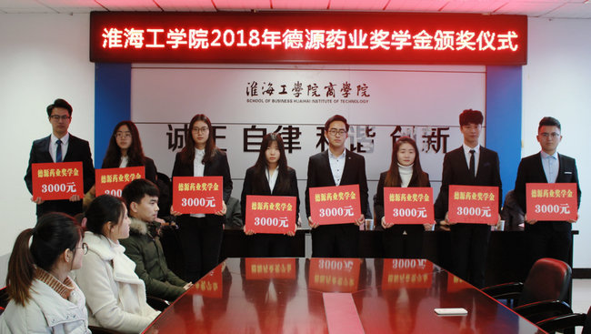 “德源药业奖学金”系江苏德源药业股份有限公司支持地方教育事业发展,鼓励和帮助我校学生勤奋学习、刻苦钻研,提高学生的理论和实践能力,定向奖励商学院与药学院相关专业的学生而出资设立的。该奖项连续设立3年,奖金总额共计27万元。