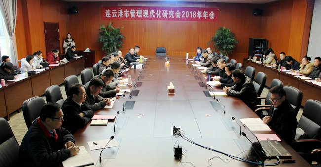 研究会理事长、淮海工学院商学院陈国华教授作了年会工作报告。报告总结了一年来连云港市管理现代化研究会的主要工作和研究成果,提出了2019年研究会的工作思路。研究会副理事长、雅欧桥管理咨询公司王刚总经理给中复神鹰碳纤维有限责任公司授牌。商学院院长助理孙军教授作题为《国内外经济形势、机遇与举措》学术报告,中复神鹰碳纤维有限责任公司代表作题为《中复神鹰精益管理》专题报告。