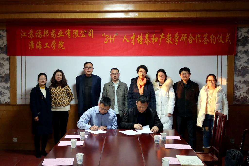 随后,史大华一行来到江苏福邦药业有限公司考察并开展合作洽谈。公司副总何受林、黄金友、魏杰三热情接待了史大华一行。宾主双方就“3+1”人才培养模式改革和产教学研合作进行了深入交流,并签订了产教学研全面合作协议和“3+1”人才培养合作协议。
