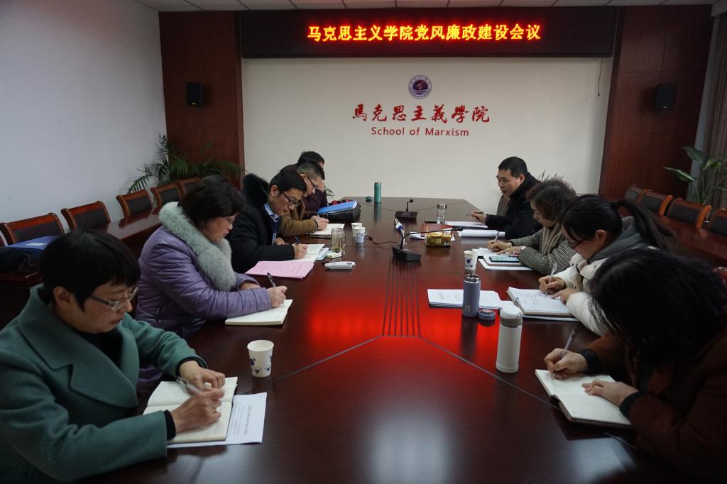 2月25日下午,马克思主义学院召开党风廉政工作会议,传达学习学校有关会议精神,布置2019年党风廉政建设工作。学院领导、教研室主任、党支部书记参加会议。会议由学院党总支书记张学武主持。