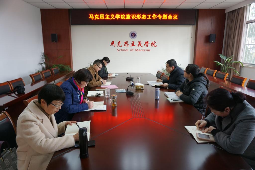 为贯彻落实学校党委关于加强意识形态工作的决策部署,进一步加强马克思主义学院意识形态工作,3月4日下午,马克思主义学院在学院会议室召开意识形态工作专题会议,研究安排意识形态工作。会议由学院党总支书记张学武主持,党总支全体成员、教研室主任、党支部书记及办公室人员参加了会议。