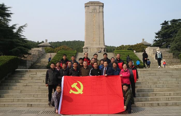 全体党员在淮海纪念塔前面向党旗,重温入党誓词。在淮海战役纪念馆内,一件件珍贵的历史文物,一幅幅记录历史的图片,再现了淮海战役的历史经过以及烈士们前赴后继、广大人民群众奋勇支援前线的英勇事迹。