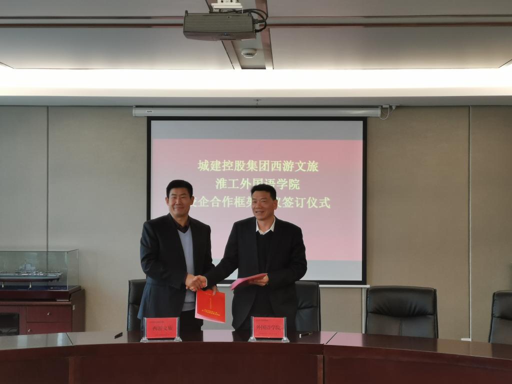 3月29日上午,外国语学院与连云港城建控股集团西游文旅公司在城建大厦签订校企合作框架协议。双方决定在国内外旅游项目推广、文化旅游产品开发推广、旅游产业人才培养等方面开展合作,共同推动连云港市文化旅游产业发展。