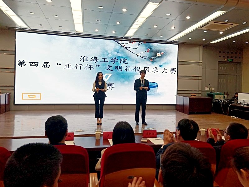 3月31日晚,由校团委主办、药学院分团委承办的淮海工学院第四届“正行杯”文明礼仪风采大赛在苍梧校区艺术楼报告厅举行。药学院党总支书记兼执行院长李树安、校团委副书记朱小明、海洋生命与水产学院团委书记王静、文学院辅导员孙士生和药学院辅导员仝友鹏担任大赛评委。