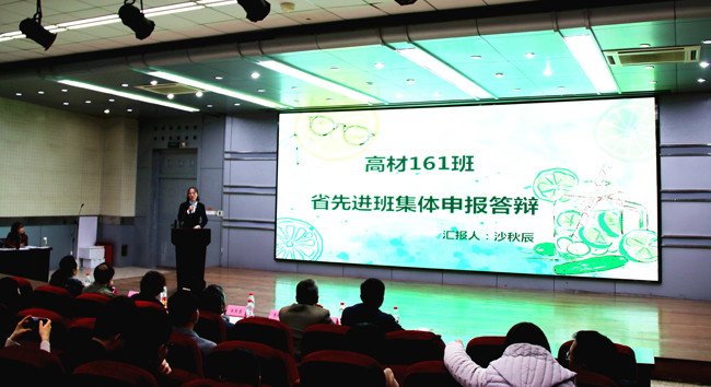 经二级学院推荐、学生工作处审核,共有15个候选班级入选参加了本次申报评选答辩。答辩会包括PPT汇报展示和评委提问两个环节,汇报展示内容主要包括班委会建设、班风学风形成、参与学术科研和文体活动、文明宿舍创建等。整场答辩会气氛活跃,精彩绝伦,场上同学通过PPT、视频、现场解说等方式将自己优秀的班集体向大家展示。最终,通过差额选举投票的方式产生11个省级先进班集体。