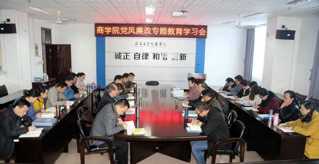 4月4日下午,商学院党委召开党委中心组理论学习暨党风廉政专题教育会,学院党委书记杨天华主持会议,学院党委委员、院领导、系主任、党支部书记、科级干部参加了会议。