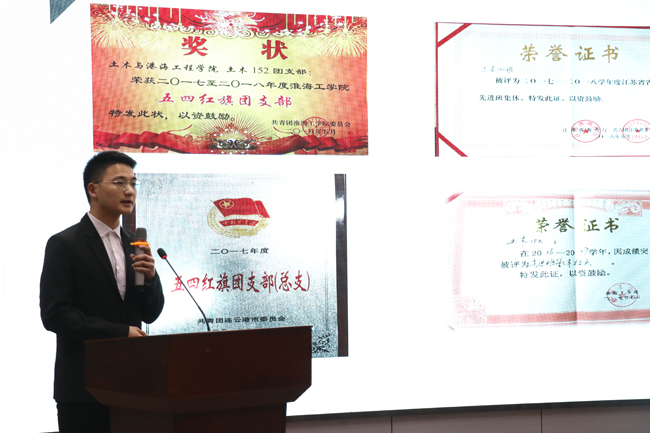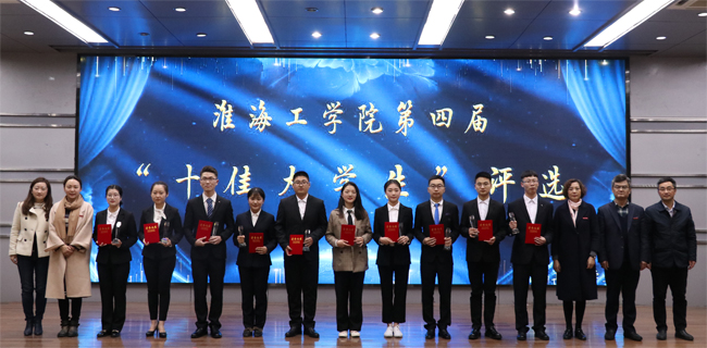 4月10日晚,淮海工学院2018-2019年度“十佳大学生”评选展示活动在艺术楼报告厅举行。本次活动由校团委主办,校学生会承办。校党委宣传部部长杨雪英、教务处处长李纪明、学生处副处长陈德翼、团委副书记王琰、团市委组宣部部长孙婧应邀出席活动。