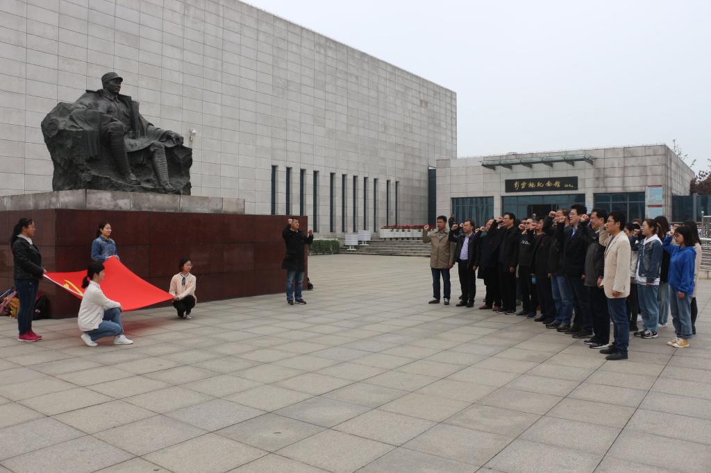 随后,师生党员们走进彭雪枫纪念馆参观学习。彭雪枫纪念馆是为纪念一代名将、新四军第四师师长兼淮北军区司令员彭雪枫将军而建。纪念馆集中展示彭雪枫将军一生光辉历程,馆内展出有关彭雪枫珍贵照片200余幅,历史资料和文物100多件。纪念馆采用国画、油画、雕塑、场景复原等多种手法,全方位再现彭雪枫将军的戎马一生和文武兼备的才华。在历次战斗中,彭雪枫披坚执锐,身先士卒,屡建奇功,被誉为中央红军中“优秀的青年将领、模范的政治委员”,荣获“红星奖章”,被毛泽东、朱德誉为“共产党人的好榜样”。