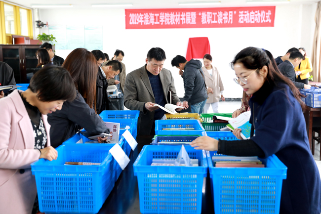 启动仪式后,大家共同参观了教材书展。此次书展由校图书馆联合江苏蓝畅教育图书有限责任公司举行,书展共有清华大学出版社、电子工业出版社等30多家出版社参与,内容基本涵盖我校所有专业。书展吸引了200多位教师到场,他们认真挑选图书,并不时地相互交流选书感受,还兴致勃勃地参观了图书馆。