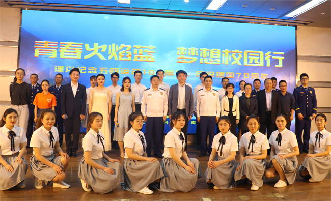 5月15日晚,连云港市“青春火焰蓝 梦想校园行”暨纪念五四运动100周年、庆祝新中国成立70周年主题教育活动在我校苍梧校区艺术楼报告厅举行。共青团江苏省委员会中少部副部长李琨,连云港市消防救援支队支队长丁俊标、政委杨华林,淮海工学院副校长金芙蓉,共青团连云港市委副书记陆叶,连云港师范高等专科学校副校长孙继才,南京医科大学康达学院党委副书记、副院长王磊等出席活动。