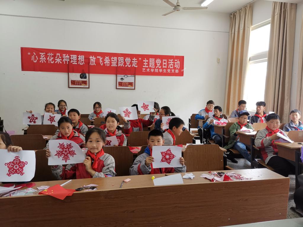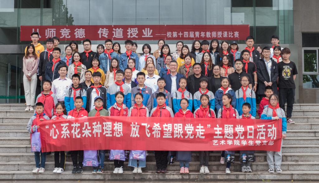 近日,由艺术学院学生党支部主办的“心系花朵种理想,放飞希望跟党走”主题党日活动在苍梧校区顺利开展。为了让少年儿童体验大学生活,感受艺术的魅力和信仰的力量,在孩子心中种下理想的种子,放飞成功的希望,艺术学院学生党支部邀请赣榆县墩尚镇岭灶村二十三名中小学生和数名学生家长来到淮海园体验大学生活。赣榆县墩尚镇组织部长董洪松、赣榆县墩尚镇岭灶村书记张洁、副书记张学刚、副主任许华、艺术学院党总支副书记李春、陆文前,辅导员周冶、赵博参加活动。