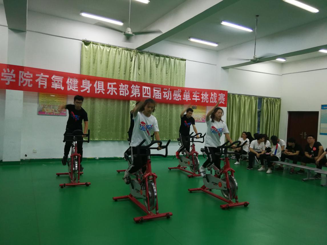 为了丰富学生的业余生活,展示大学生的风采,5月29日下午,我校有氧健身俱乐部在苍梧校区主运动场举办了第四届动感单车挑战赛,本次比赛的主题是“将青春演绎到极致”。近百名同学参加了比赛,比赛分为单人赛、团体赛共31个项目。有氧健身教学俱乐部的近四百名同学在现场观摩了比赛。