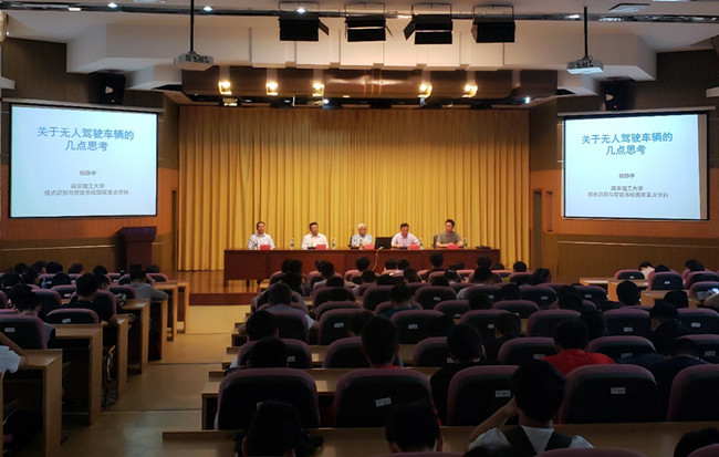 杨静宇教授的报告题目为《关于无人驾驶车辆的几点思考》。他首先介绍了地面无人驾驶车辆发展的历史,以及到目前为止在无人驾驶车辆研究领域取得的标志性成果。分析了军用和民用无人驾驶车辆的主要区别,介绍了智能汽车等级划分的标准和几种代表性的商用无人驾驶车辆。此外,他还介绍了无人驾驶车辆当前发展的现状和遇到的主要困难,并提出了具体的解决思路和建议。最后,杨教授展示了他所带领的团队在该领域的研究成果。报告中,杨教授将理论和实践相结合,介绍了国内外前沿理论和最新研究成果,讲座内容丰富,引发了广大师生深刻的思考。杨教授还讲述了自己做学问过程中的心得,并分享了诸多宝贵的经验,令师生们获益匪浅。