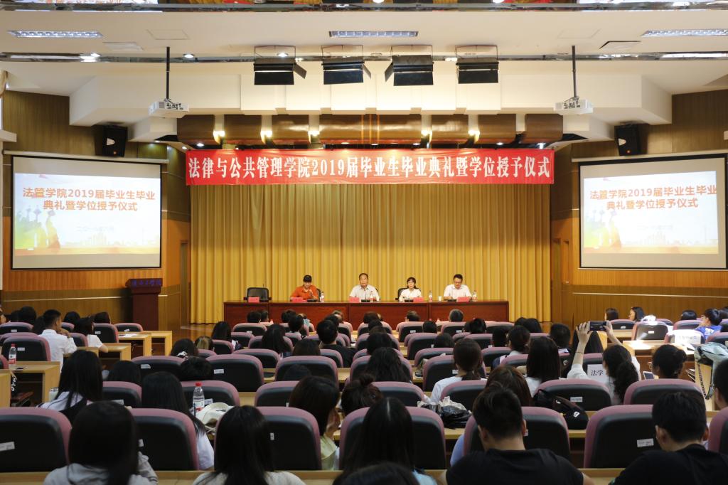 6月23日上午,法律与公共管理学院在文博楼报告厅隆重举行2019届毕业生毕业典礼暨学位授予仪式。校党委常委、副校长金芙蓉出席活动,法律与公共管理学院党政班子成员,各系主任、毕业班班主任、辅导员及全体2019届毕业生参加了毕业典礼。毕业典礼由副院长李敏主持。